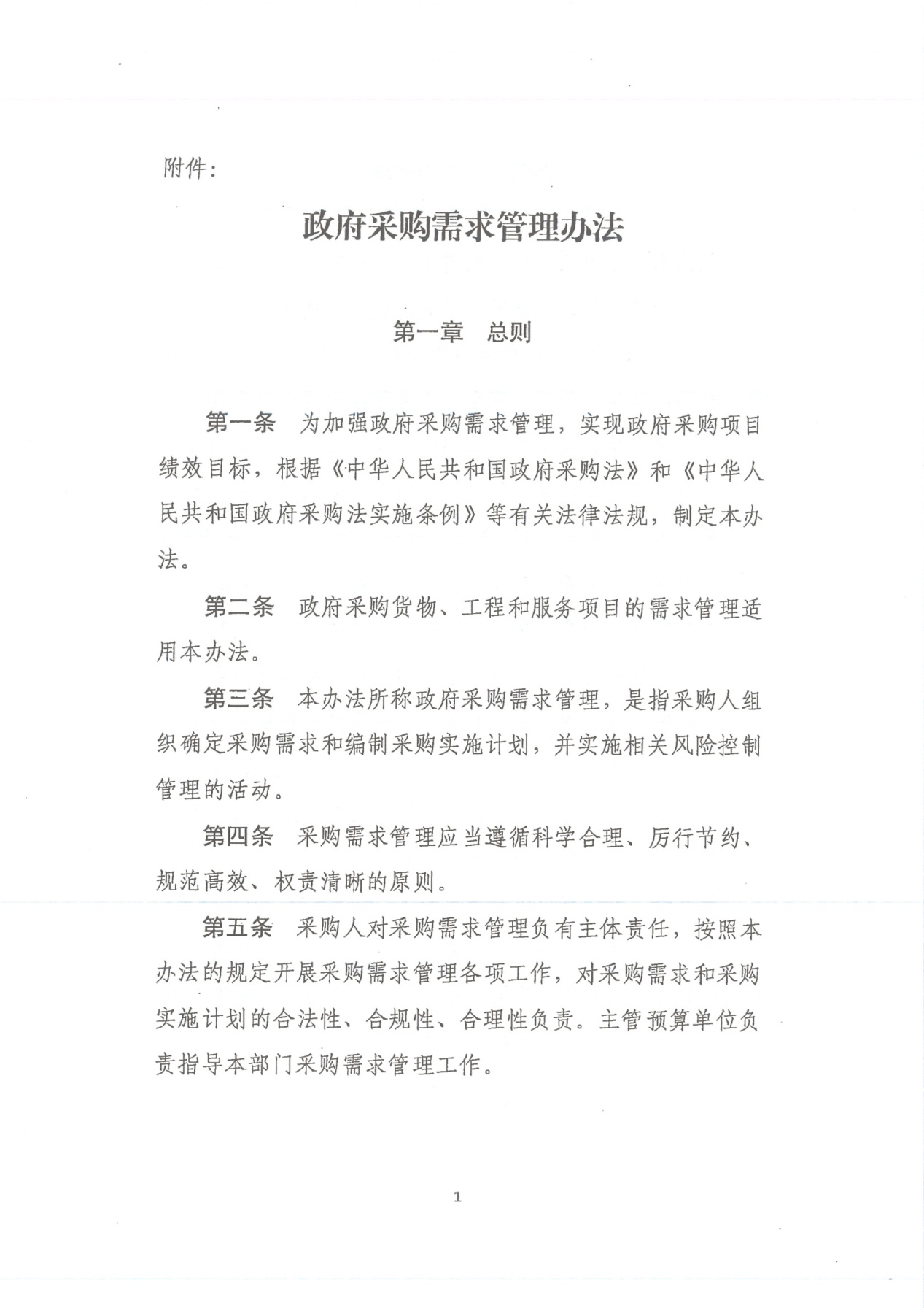 彭水苗族土家族自治县财政局关于转发《政府采购需求管理办法》的通知