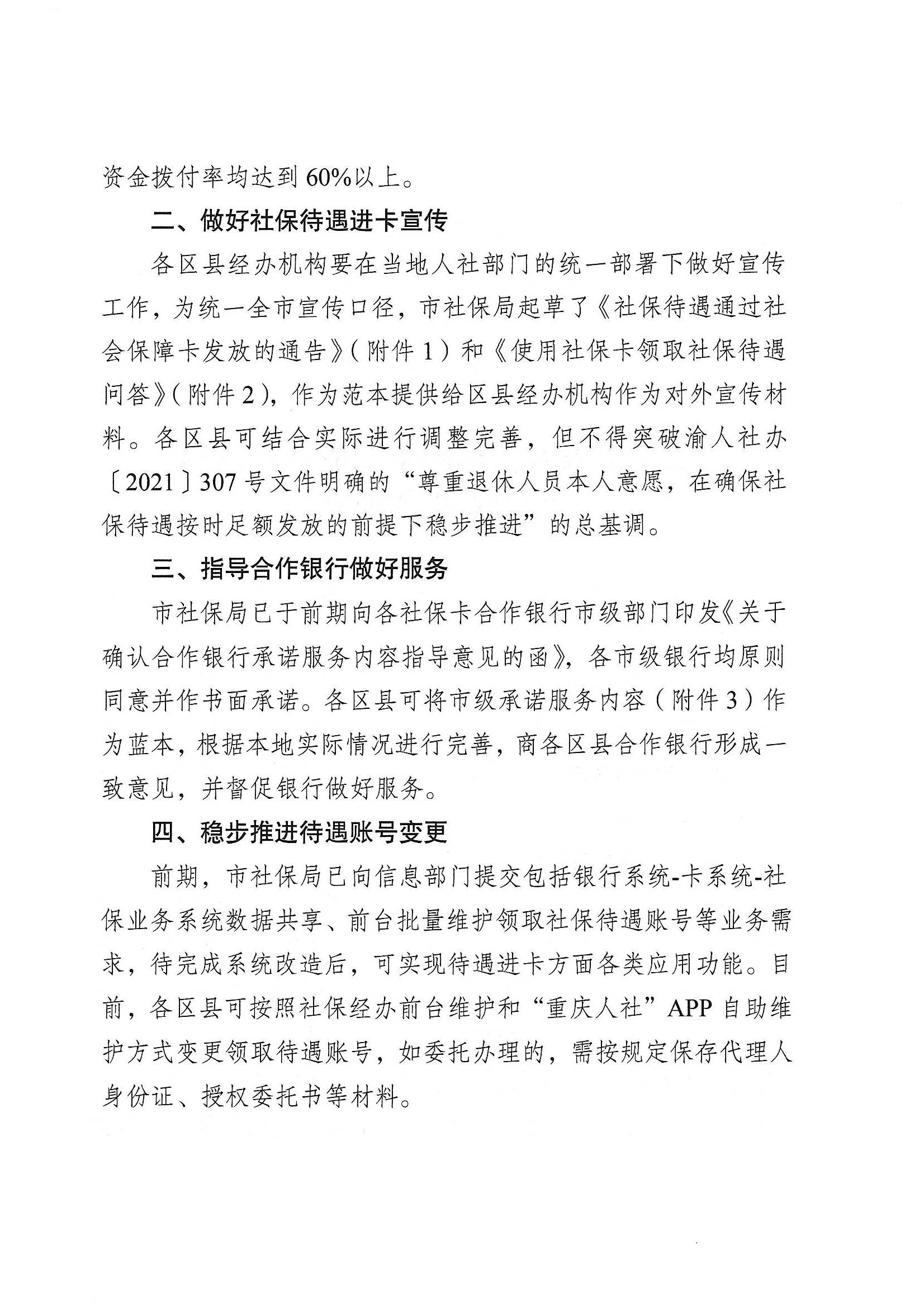 现将《重庆市社会保险局关于印发社会保障卡领取社保待遇经办意见的通知》(渝社险办〔2021〕15号)转发给你们,请结合《关于全面推进应用社会保障卡发放养老和工伤保险待遇工作的通知》(彭水人社发〔2022〕8号)一并贯彻执行。