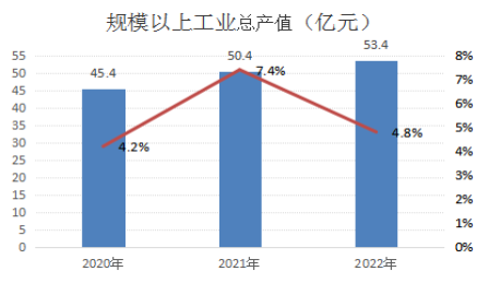 图2:2020—2022年规模以上工业总产值及同比增幅