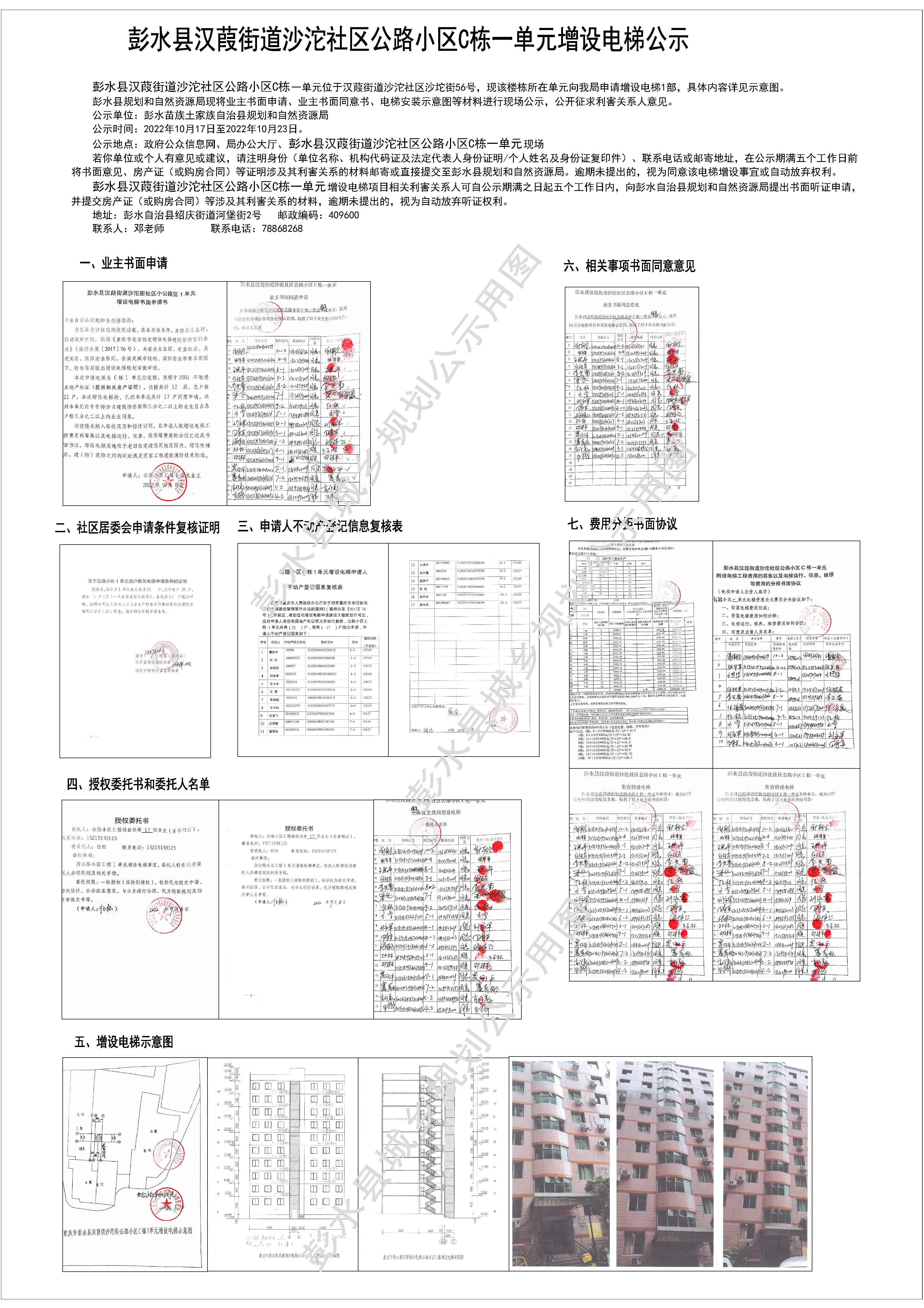 彭水县汉葭街道沙沱社区公路小区C栋一单元增设电梯公示